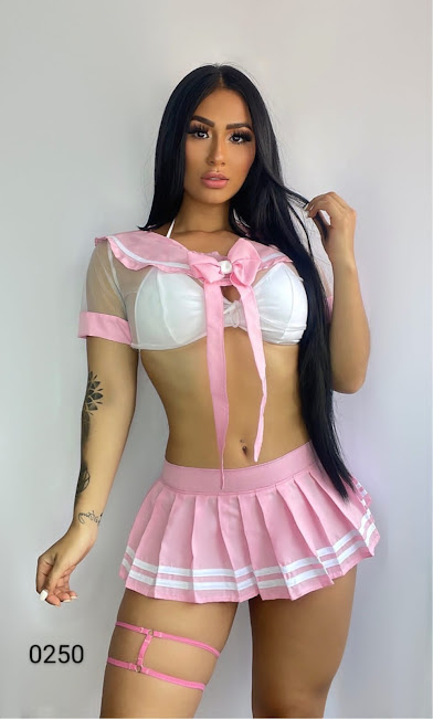 La mayor fantasia podras cumplirla con este espectacular disfraz de colegiala en talla unica disponible en rosado y lila
