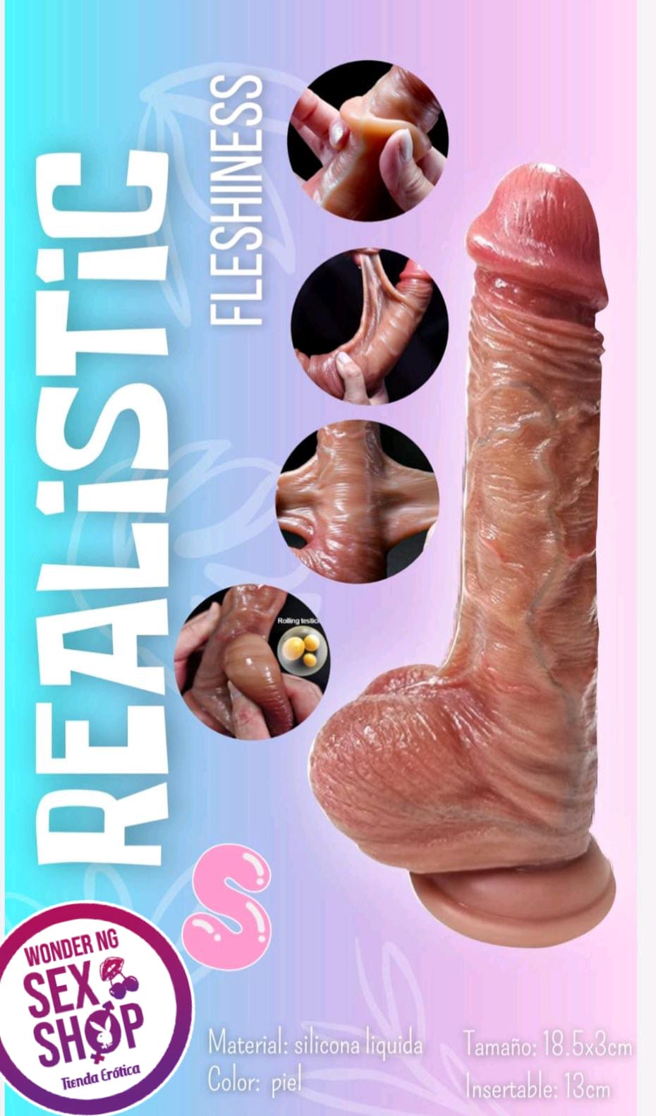 Dildo extra realista elaborado en piel sintetica, texturizado con piel retractil
